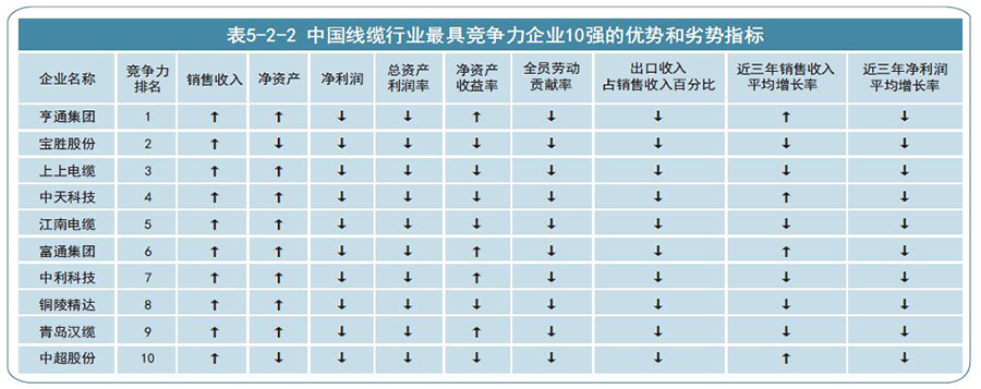 二、中国线缆行业最具竞争力10强企业竞争力现状分析